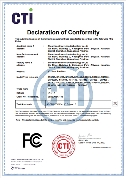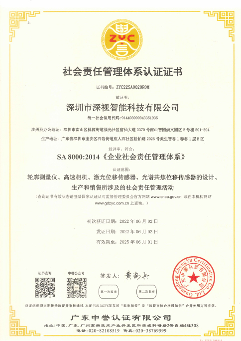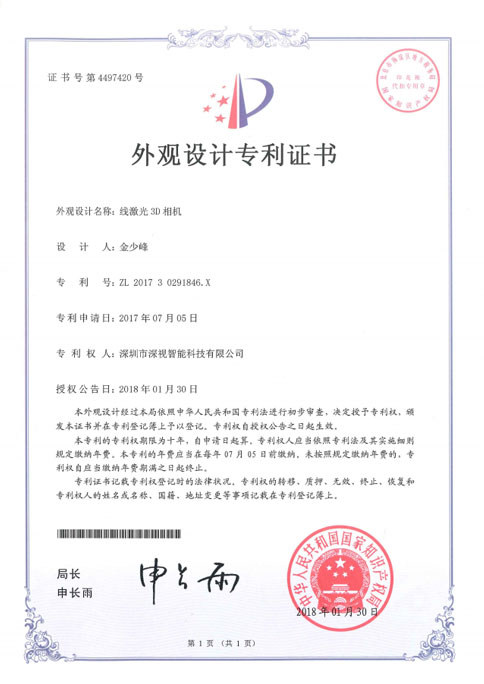 深視智能取得產(chǎn)品“CE認(rèn)證”、“FCC認(rèn)證”、“KC認(rèn)證”、“精度認(rèn)證”